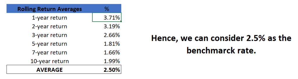 Eventually we will find the simple average for all of them and use it as the benchmark rate of return.